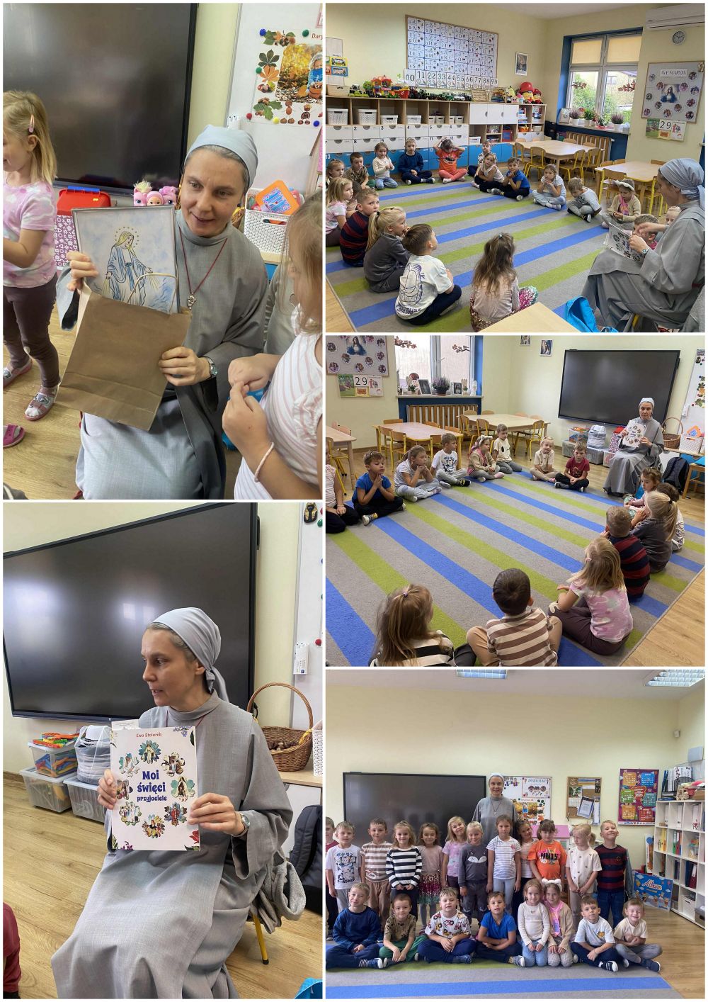 Grupę odwiedziła s. Anuncjata i przeczytała kilka wierszy z pięknej książeczki " Moi święci przyjaciele". Dziękujemy Siostrze za piękne obrazki ze Świętymi!