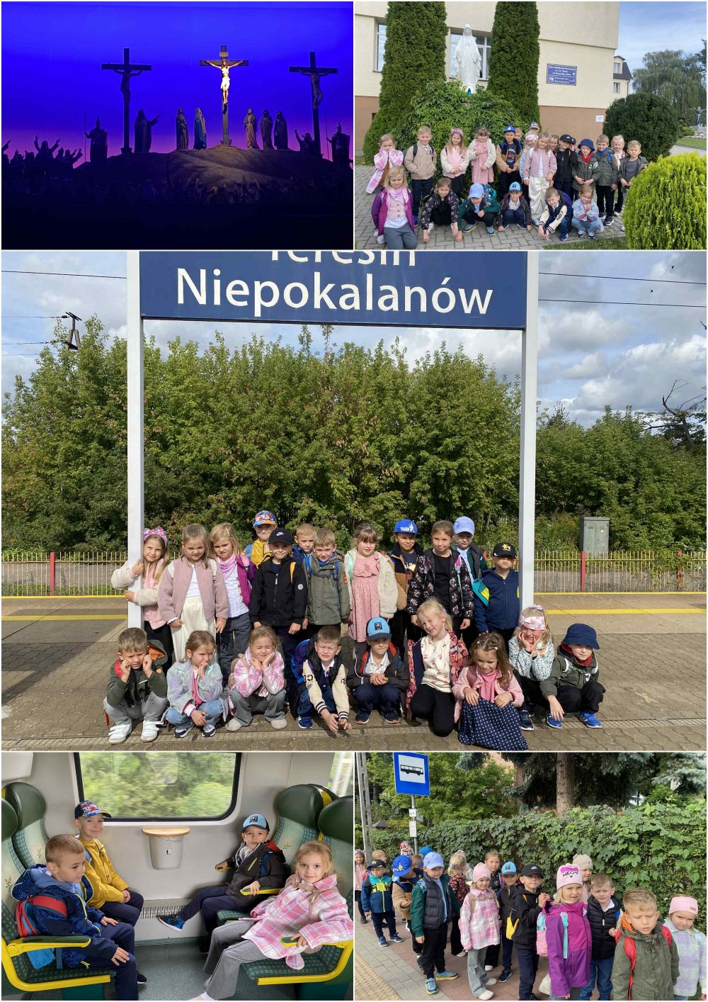 Pielgrzymka Aniołków do Niepokalanowa. Z okazji Dnia Przedszkolaka grupa Aniołki postanowiła wybrać się do Bazyliki Mniejszej w Niepokalanowie, która jest w roku jubileuszowym Kościołem Stacyjnym. Przywitał nas ojciec Andrzej, który jest proboszczem tego kościoła i udzielił nam błogosławieństwa na ostatni rok naszej wspólnej drogi w przedszkolu. Pomodliliśmy się przed ołtarzem Niepokalanej oraz w Kaplicy Wiecznej Adoracji. Obejrzeliśmy Misterium Męki Pańskiej, które zrobiło na dzieciach duże wrażenie. Dodatkową atrakcją naszego pielgrzymowania była przejażdżka pociągiem. To był piękny i pełen wzruszeń dzień.