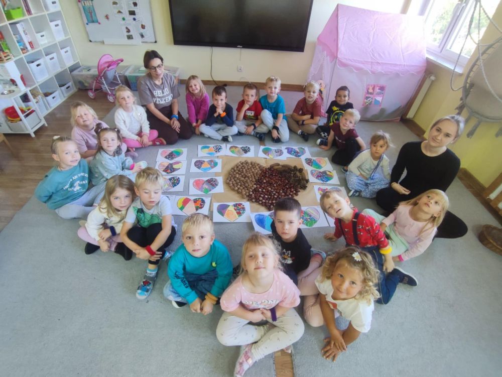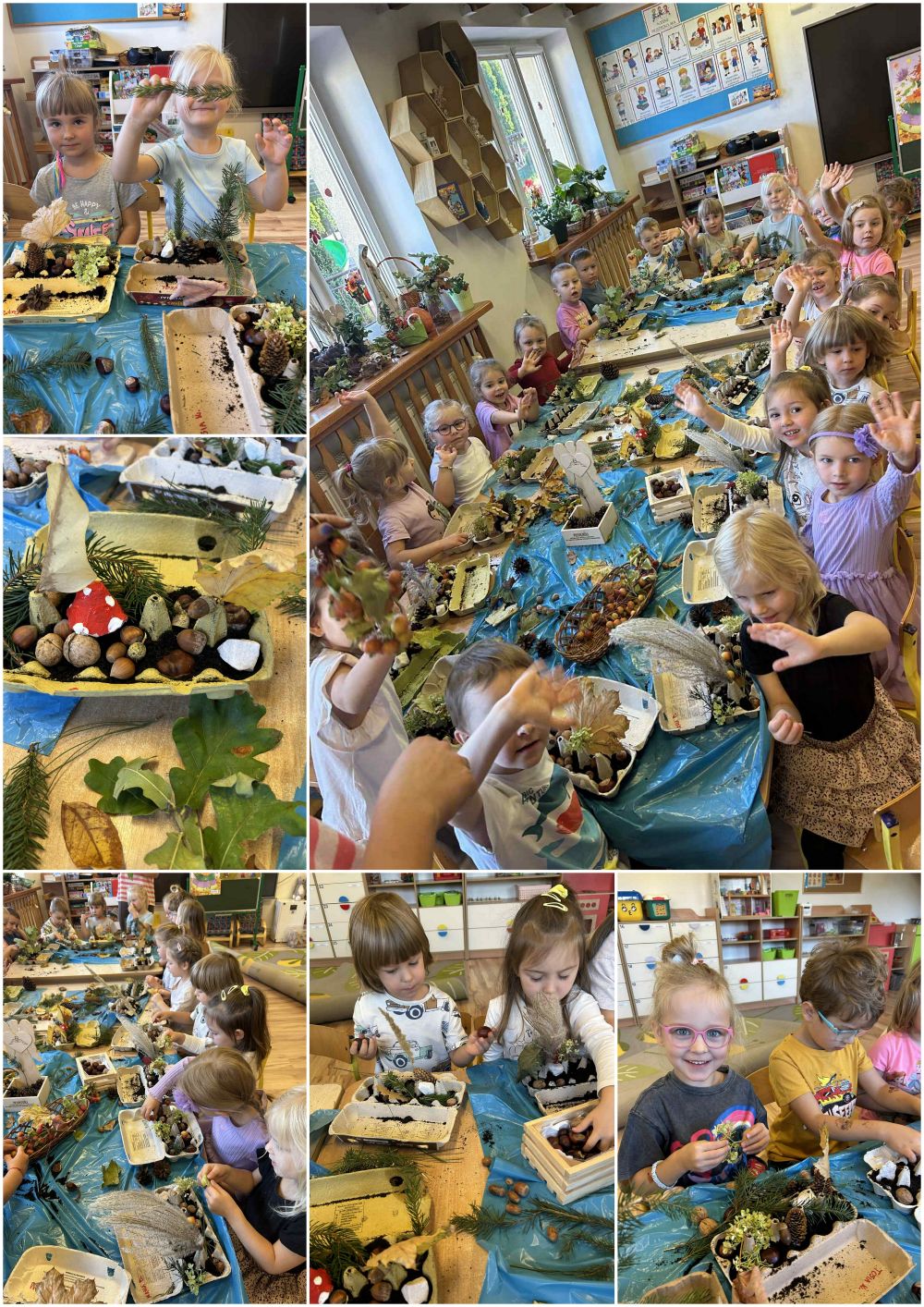 Dzieci wykazały się kreatywnością, tworząc grzybki z wytłaczanek i orzechów, drzewa z liści i gałązek.