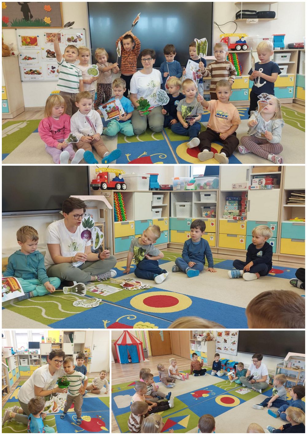 Odwiedziła nas ciocia Aldona - wychowawca grupy Myszki, prywatnie mama Bartosza. Ciocia Aldona przeczytała nam wiersz Jana Brzechwy "Na straganie" ilustrując go obrazkami warzyw. Było to bardzo miłe spotkanie.