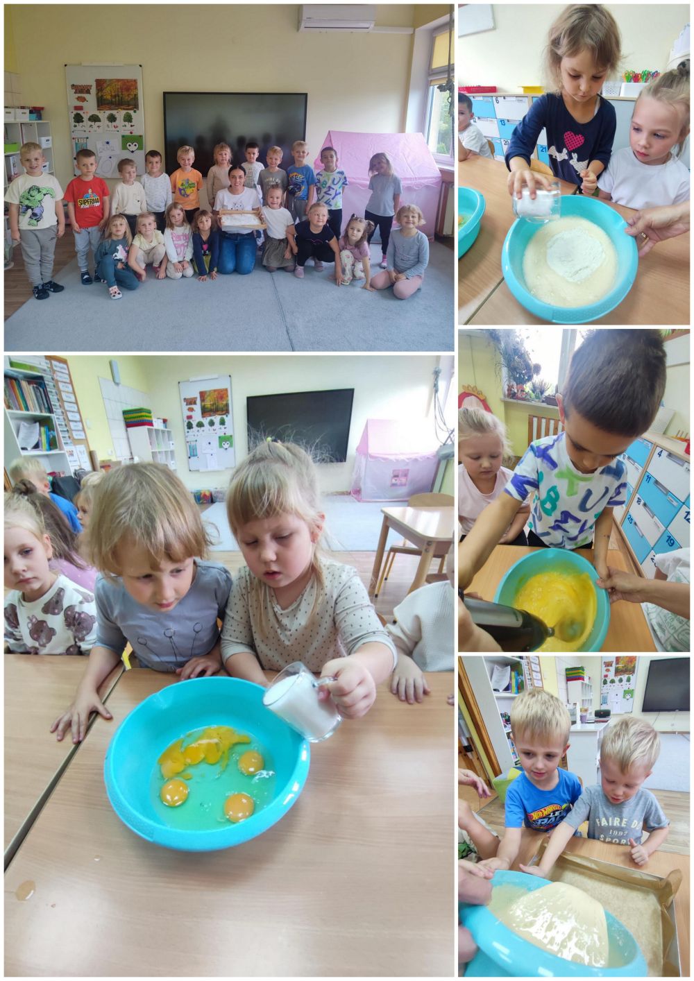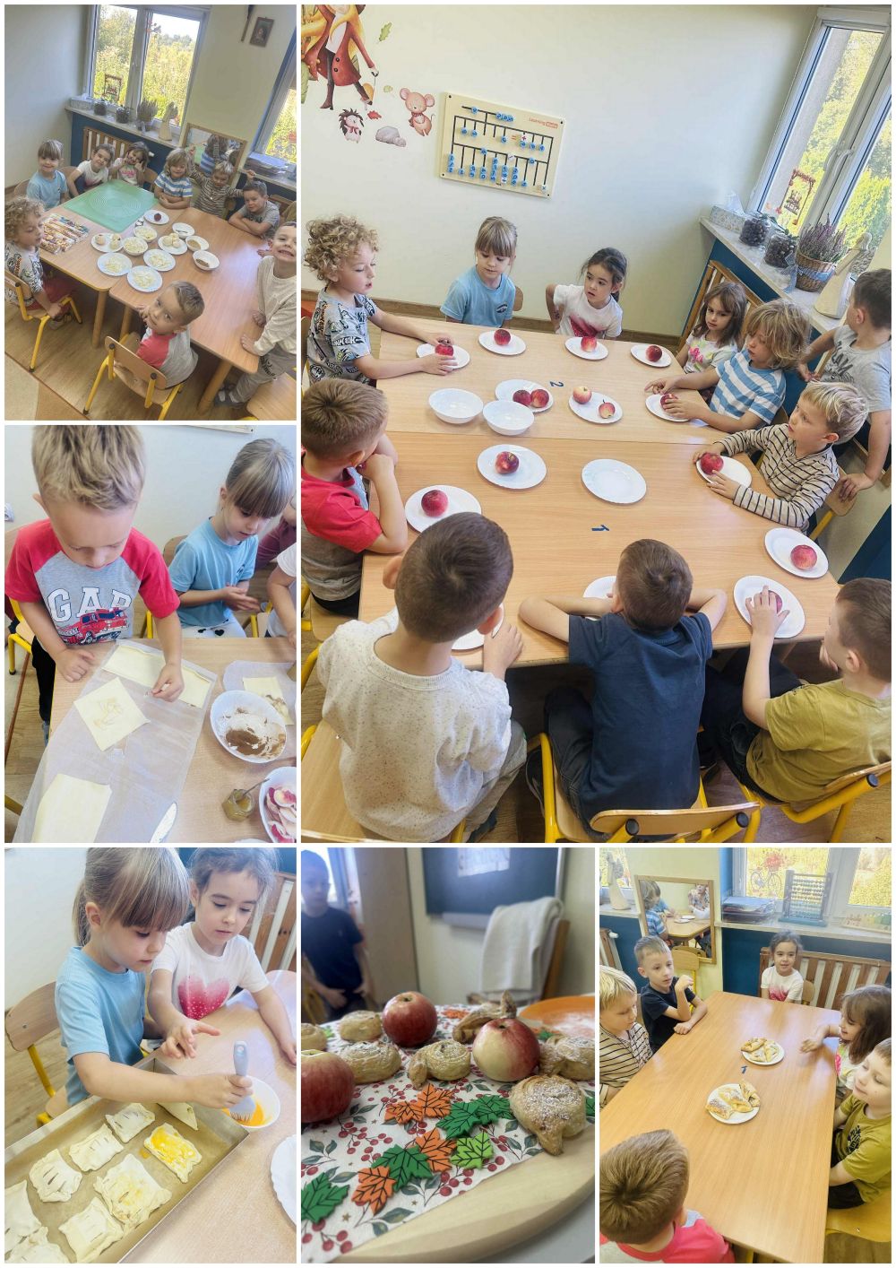 We wtorek 30 września dzieci z grupy Żabki, wykorzystując jabłka nazbierane wcześniej w sadzie, upiekły pyszną i pachnącą szarlotkę.