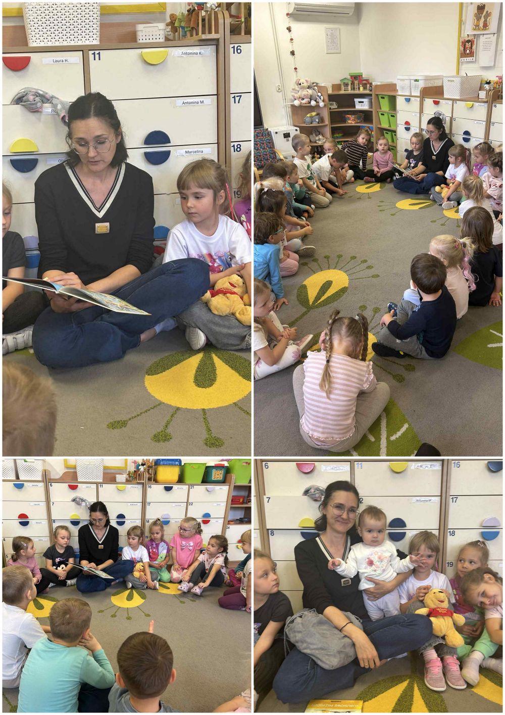 Zaprosiliśmy mamę Patrycji z malutką Anią do wspólnego czytania Kubusia Puchatka. Ćwiczyliśmy wyobraźnię ubierając sympatycznego, żółtego misia w spodenki i kapelusz.