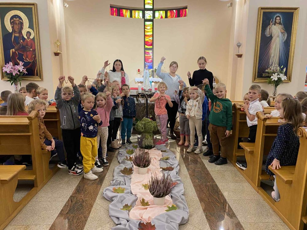 18 października po raz kolejny nasze Przedszkole uczestniczyło w akcji ,,Milion dzieci modli się na różańcu ''. Wspólne odmawianie Różańca z dziećmi umacnia jedność w Kościele i między narodami. Wszyscy jesteśmy wezwani, by tworzyć jedną rodzinę ponad podziałami, zjednoczoną w modlitwie. Cieszymy się, że możemy być znów częścią tego dzieła.