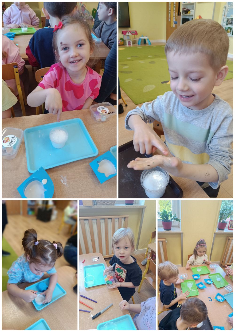 Tym razem dzieci eksperymentowali z gipsem polimerowym.